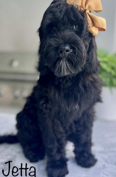 Jetta is a female, should be 24-25 pounds at maturity. She is crate trained, leash trained and (mostly) potty trained. We are learning sit and stay.